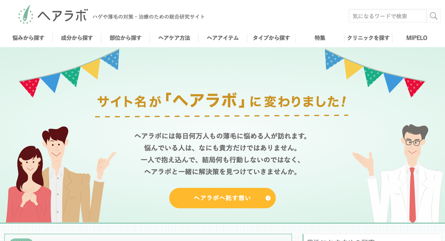 “ハゲラボ”というサイト名は確かに「ストレート」で「ドキッ」とする。 ただ、いつまでもその言葉から逃げて何もしないと、状況は悪くなるばかりだと考えました。わかる、わかるぞハゲラボ改めヘアラボ!