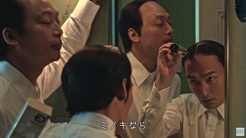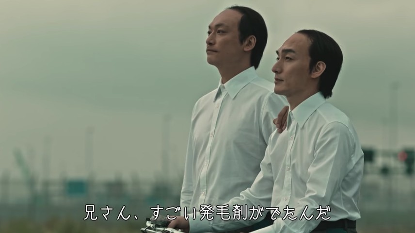 CMで2人は、おでこ全開で生え際のきわどい兄弟“ミノキ兄弟”を好演。草なぎさんが兄、香取さんが弟という設定で、