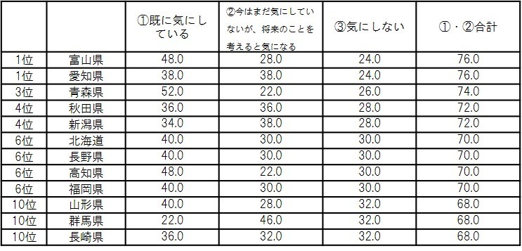 すでに気にしている、という点では、富山県が愛知県を上回っていますね。置き薬に育毛剤を入れかねない勢いです。