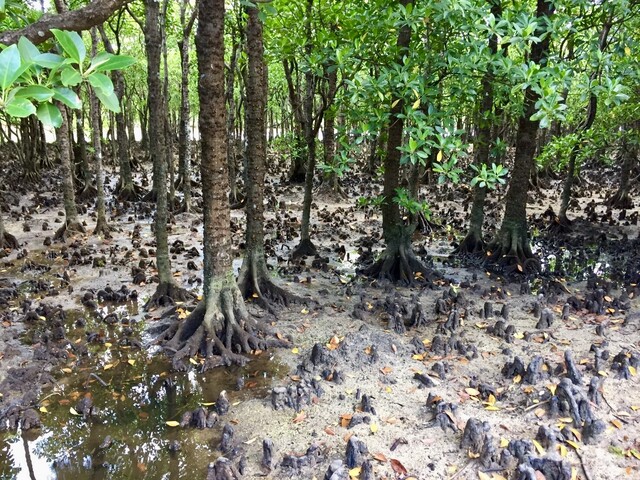 深い巣穴を掘るときに出た土を積み上げて塚を作り、それによってマングローブの生態系が守られているのだとか。