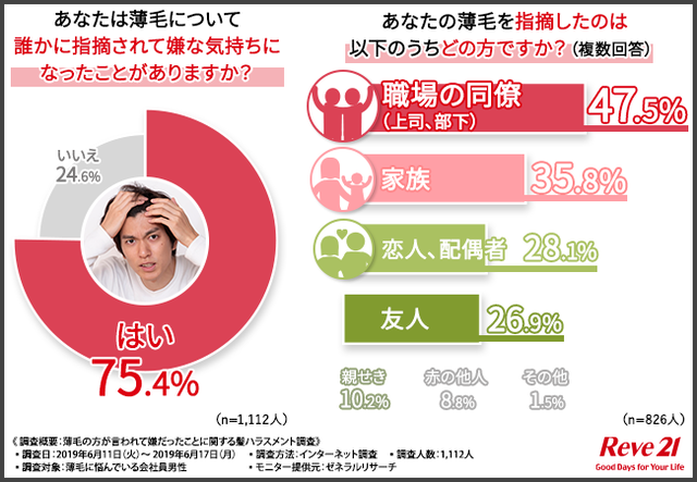 しかし、「言われたほうが傷ついたらそれはハラスメント」というのが世界の新常識。1112人の薄毛に悩んでいる会社員男性に、リーブ21がアンケート調査を行いました。
