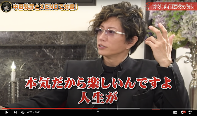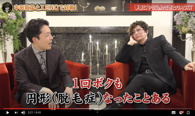 中田の発言にGACKTは「1回僕も円形(脱毛症)になったことがあるんで」と返答。