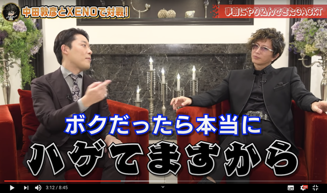 近頃はミュージシャンや実業家だけではなく、YouTuberとしても活躍していますが、そんなGACKTがオリエンタルラジオ中田敦彦とYouTubeで対談。あるテレビ番組でハゲかけたことを明かしました。
