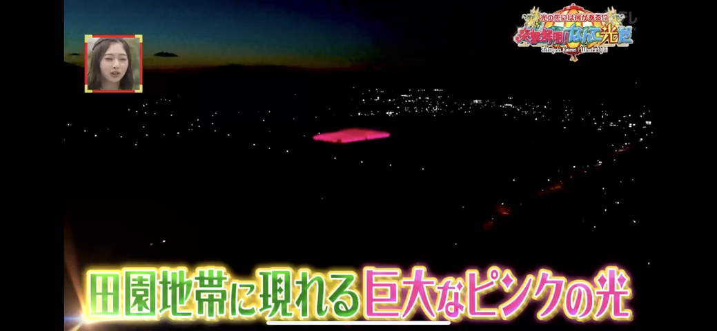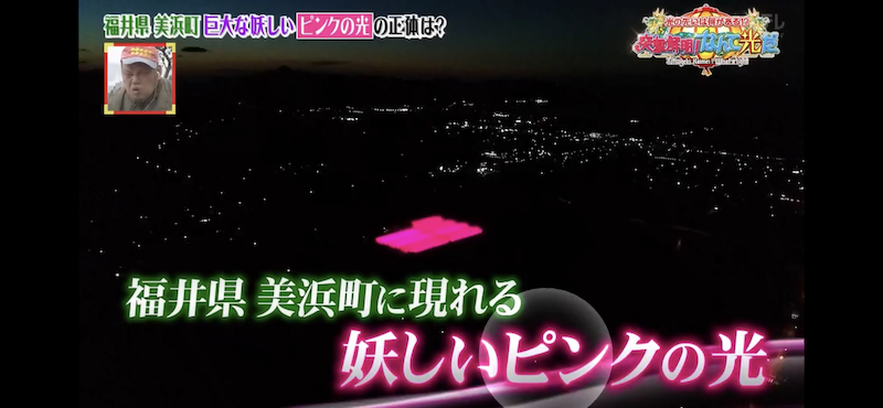確かに真っ暗な美浜町の中で、ここだけがピンク色に輝いています。なぜここだけがピンクに輝いているのか。さっそくトレンディエンジェルが現地に向かいます。