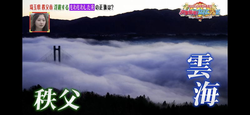 愚痴っていたナダルでしたが、少ないヒントを頼りに導き出した答えが「雲海」でした。秩父の山から見える雲海がなぜか七色の光を放ち、幻想的な世界を広げているのだそうです。