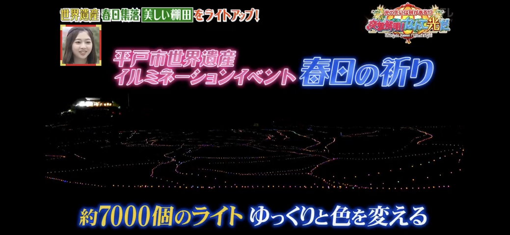 こちらは平戸市世界遺産のイルミネーションイベント・春日の祈りで、まるでナスカの地上絵のような青白い光の正体はイルミネーションのライトだったのです。