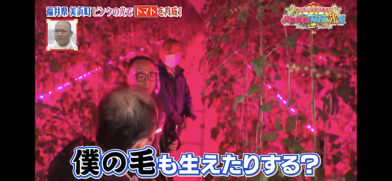 なぜビニールハウスが妖しいピンクの光を放っているのか。中で何が栽培されているのか。トレンディエンジェルが入ってみたところ、そこに広がっていたのはトマト畑でした。