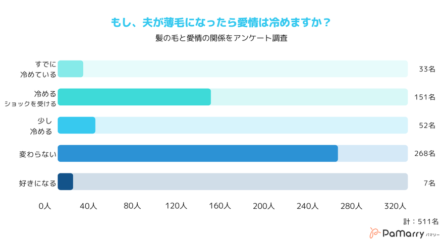 結婚後に夫が薄毛になっても愛情は変わらないと答えた女性が過半数いたことにより、うっかりスルーしてしまいましたが、先ほどのアンケート結果を今一度ご確認ください。