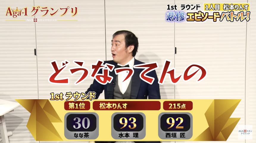 合計3つのエピソードを披露した松本りんすですが、結果は215点と振るわず。