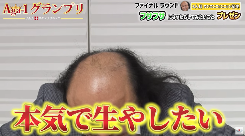 AGAスキンクリニックが主催する新たな賞レースで、薄毛治療をしたい出場者がエピソードやネタをプレゼン。審査員の心を掴んだ1人がAGA治療1年分を獲得できるハゲに優しい大会になっています。