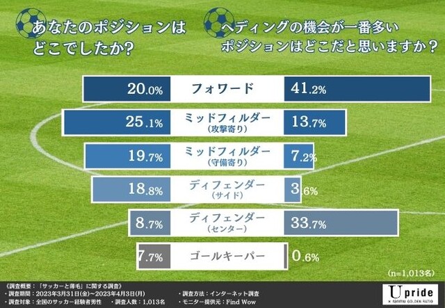 ヘディングの機会が多いと思うポジション上位2位がそのまま、薄毛を自覚するポジションと一致する形となりました。やはりヘディングと薄毛は関係するのかどうなのか。