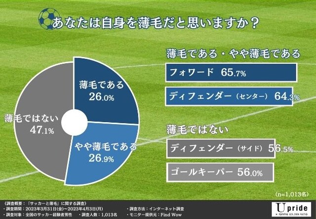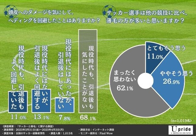そこで今回は、サッカー経験者1013名を対象におこなった「サッカーと薄毛」に関する調査結果をご報告します。
