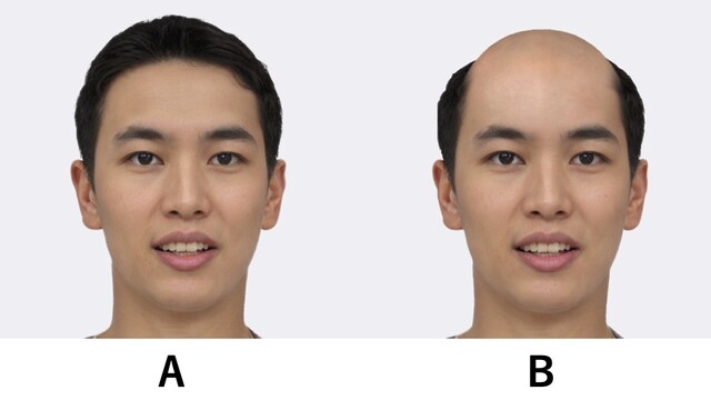 Q.応募者が薄毛だった場合、採用の評価にどれくらい影響しますか?さらに、顔立ちがまったく同じ男性のフサフサとハゲハゲの画像を用意し「あなたが採用を担当する面接官だとして、能力やその他の要素は同じ場合、次のうちどちらの人物を採用しますか?」と尋ねたところ、