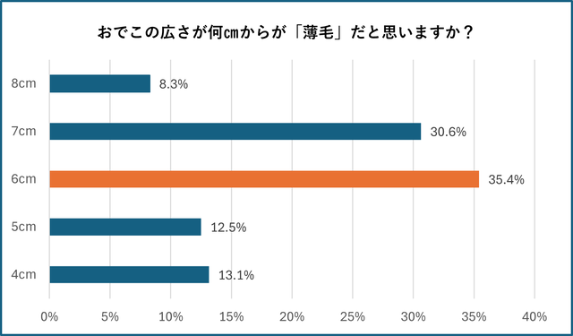 興味深いのは、すべての回答から薄毛の境界線の平均値は6.08cmとなり、前年比-0.02cm、一昨年比-0.1cmと2年連続で減少。