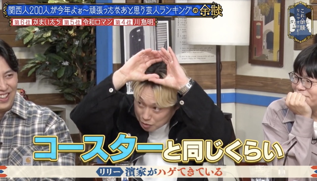 この日の放送には、ニューヨーク、見取り図・リリー、ライス・関町知弘がゲスト出演。関西人200人に聞いた「今年よぉ〜頑張ったなぁ」と思う芸人ランキングTOP10を発表する企画が行われました。