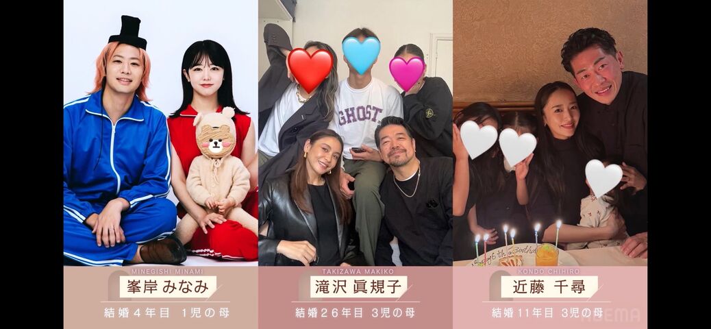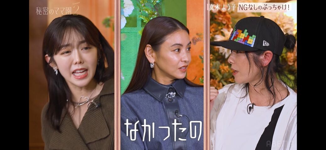 セレブモデルの「タキマキ」こと滝沢眞規子さん、ジャングルポケット太田博久さんの妻、近藤千尋さん、そして峯岸みなみさんの3人がMCを務めるABEMAの番組『秘密のママ園』
