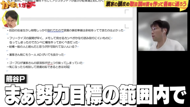 その際、番組のプロデューサーからは「まぁ努力目標の範囲内で(対応してほしい)」との声も。現場でカメラワークを調整しながら対応している様子がうかがえます。