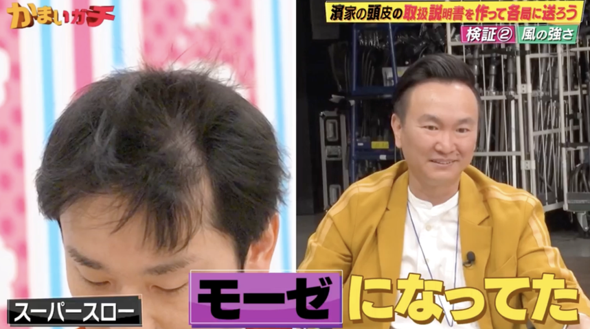 まず明かされたのは、『かまいガチ』スタッフの間でも、濱家の頭頂部について話題になっているという事実。反省会であがっていたのは、「ゴープロが濱家さんの頭頂部ががっつり映ってしまっていた」という問題でした。